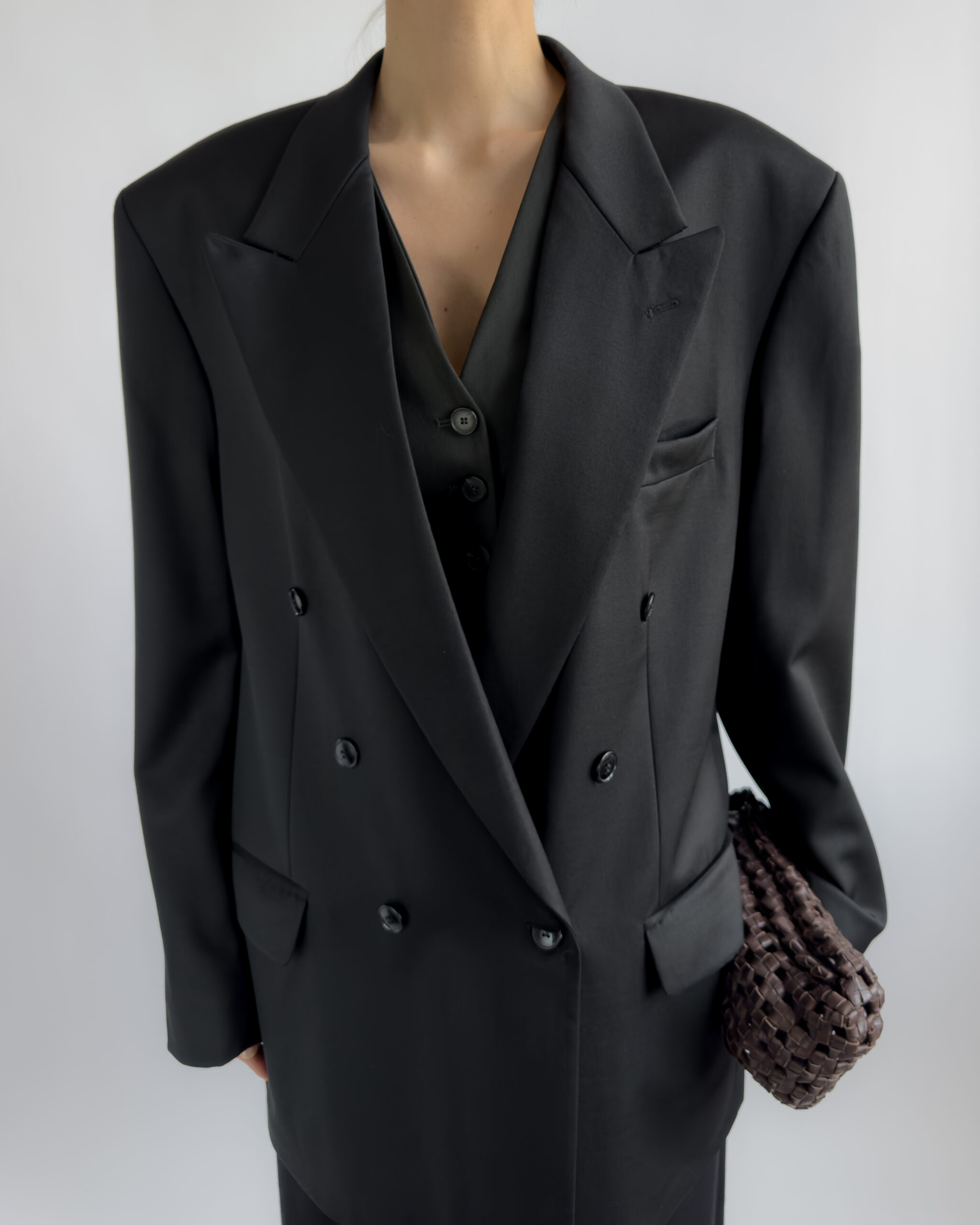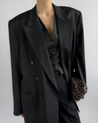 90s vintage blazer by Festive Turo Tailor featuring a sharp double-breasted silhouette and structured shoulders. Made from 100% pure new wool with viscose lining. Impeccably preserved in like new condition.