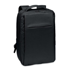 Laptop bag in 360D 2 tone polyester including one main internal compartment for 15 inch laptop and one zippered front pocket. Includes detachable and adjustable shoulder strap. Trolley holder on back side.