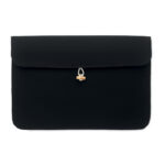15 inch padded laptop pouch in 220 gr/m² cotton. Inner lining 120 gr/m². Bamboo button closure.