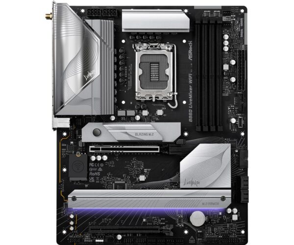 Mainboard|ASROCK|Intel B860 Express|LGA1851|ATX|Memory DDR5|Memory slots 4|1xPCI-Express 4.0 16x|1xPCI-Express 5.0 16x|1xM.2|1xHDMI|1xAudio-Out|1xMicrophone|6xUSB 2.0|6xUSB 3.2|1xUSB-C w/Thunderbolt|1xOptical S/PDIF|1xRJ45|B860LIVEMIXERWIFI