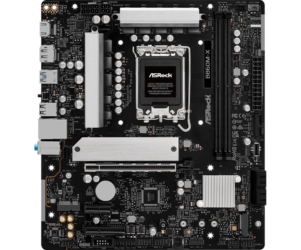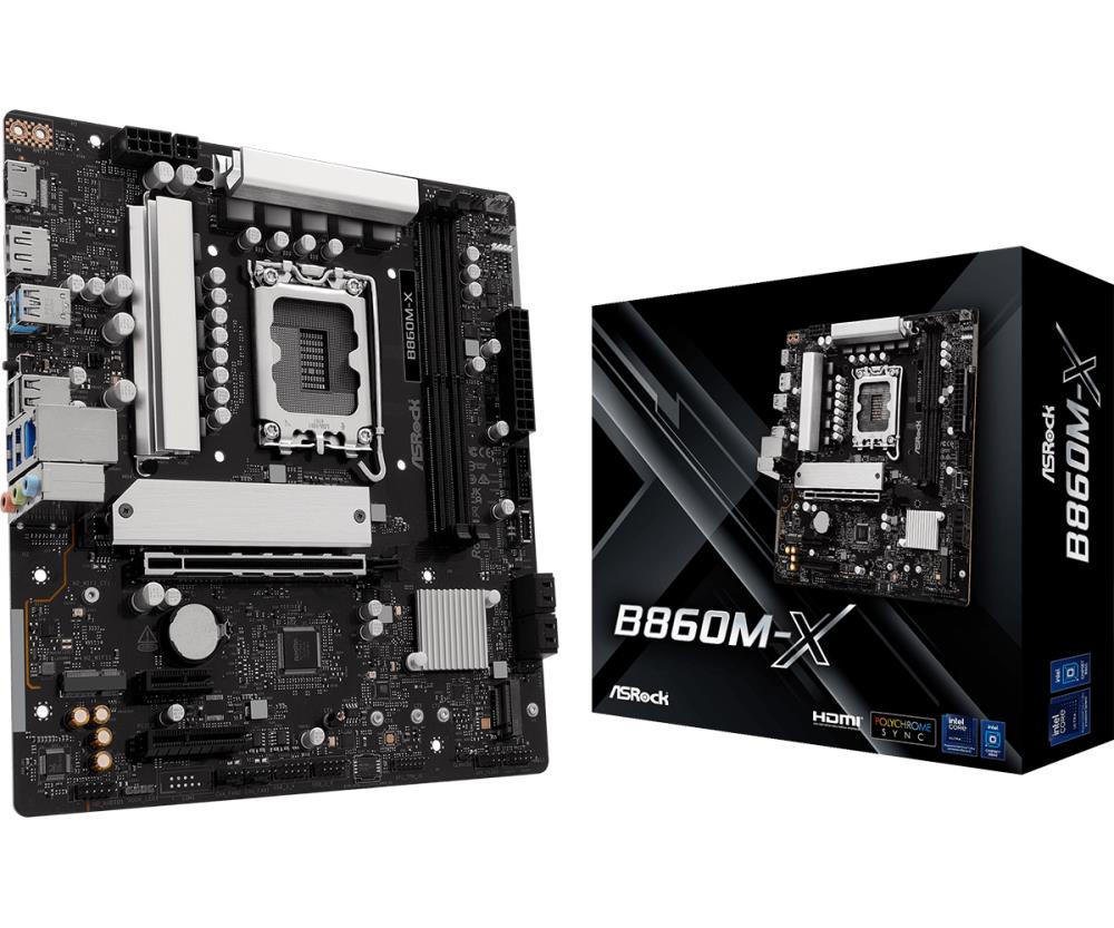 Mainboard|ASROCK|Intel B860 Express|LGA1851|Micro-ATX|Memory DDR5|Memory slots 2|1xPCI-Express 4.0 1x|1xPCI-Express 4.0 4x |1xPCI-Express 4.0 16x|1xM.2|1xHDMI|1xDisplayPort|1xAudio-In|1xAudio-Out|1xMicrophone|2xUSB 2.0|3xUSB 3.2|1xUSB-C|1xRJ45|B860M-X