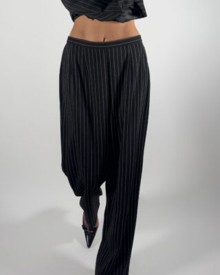 Elegant pinstriped trousers in black.
