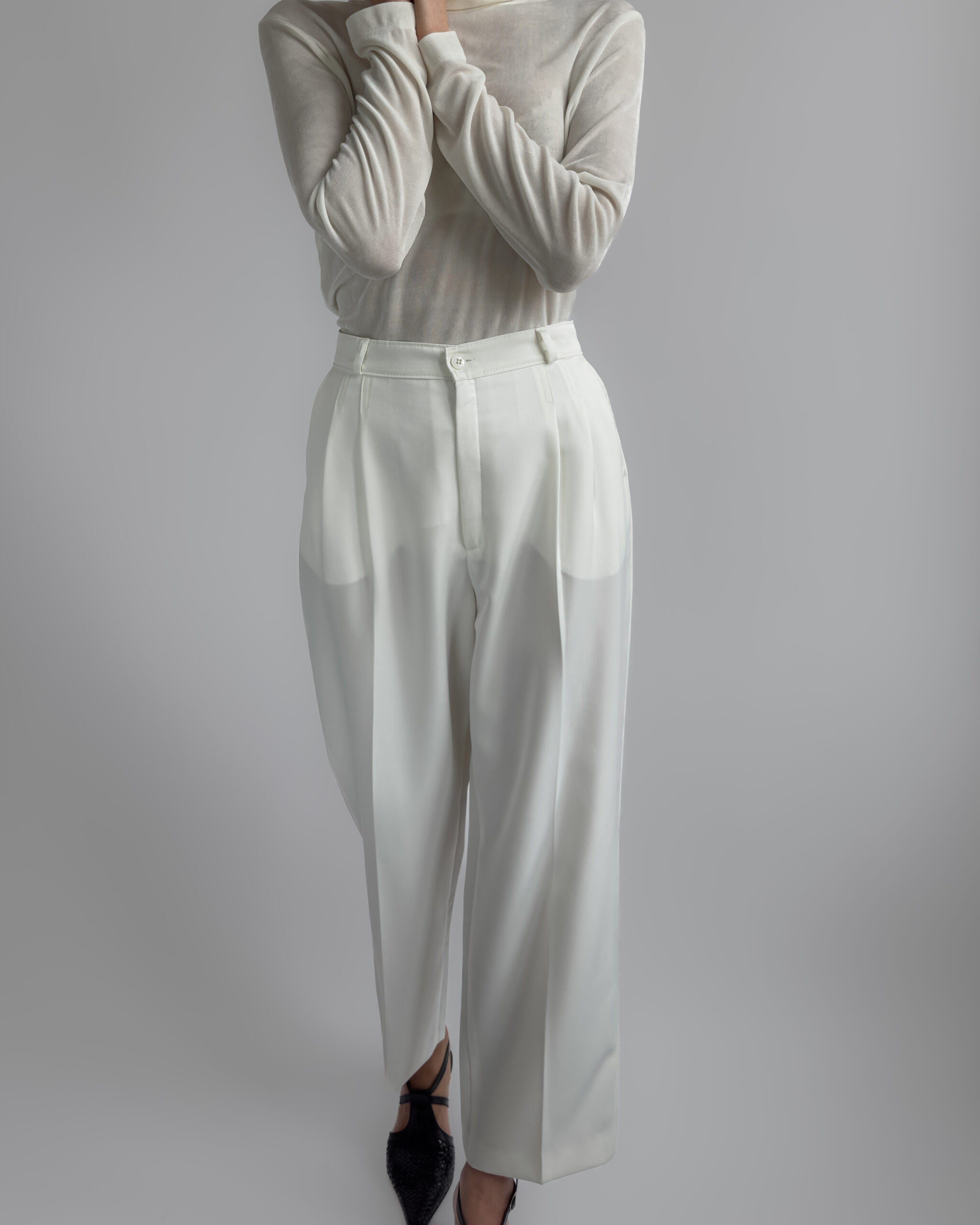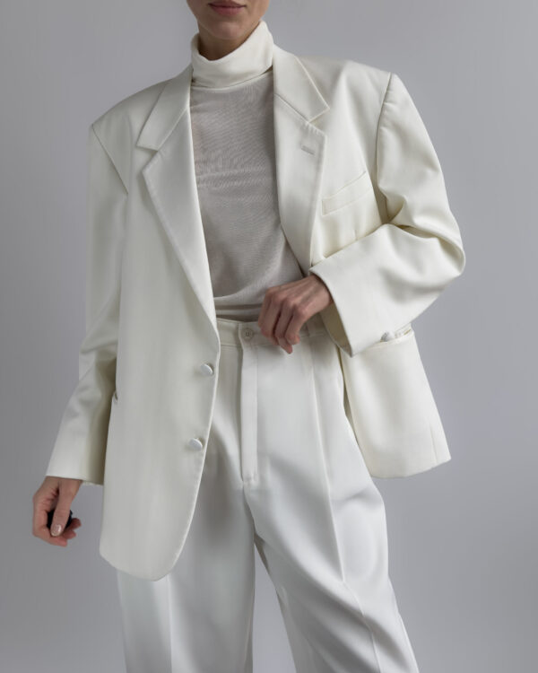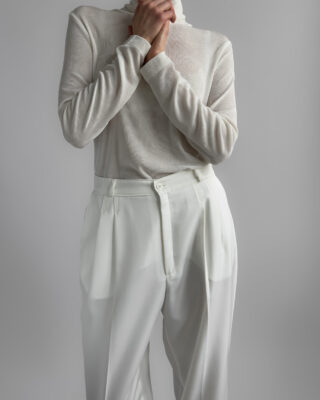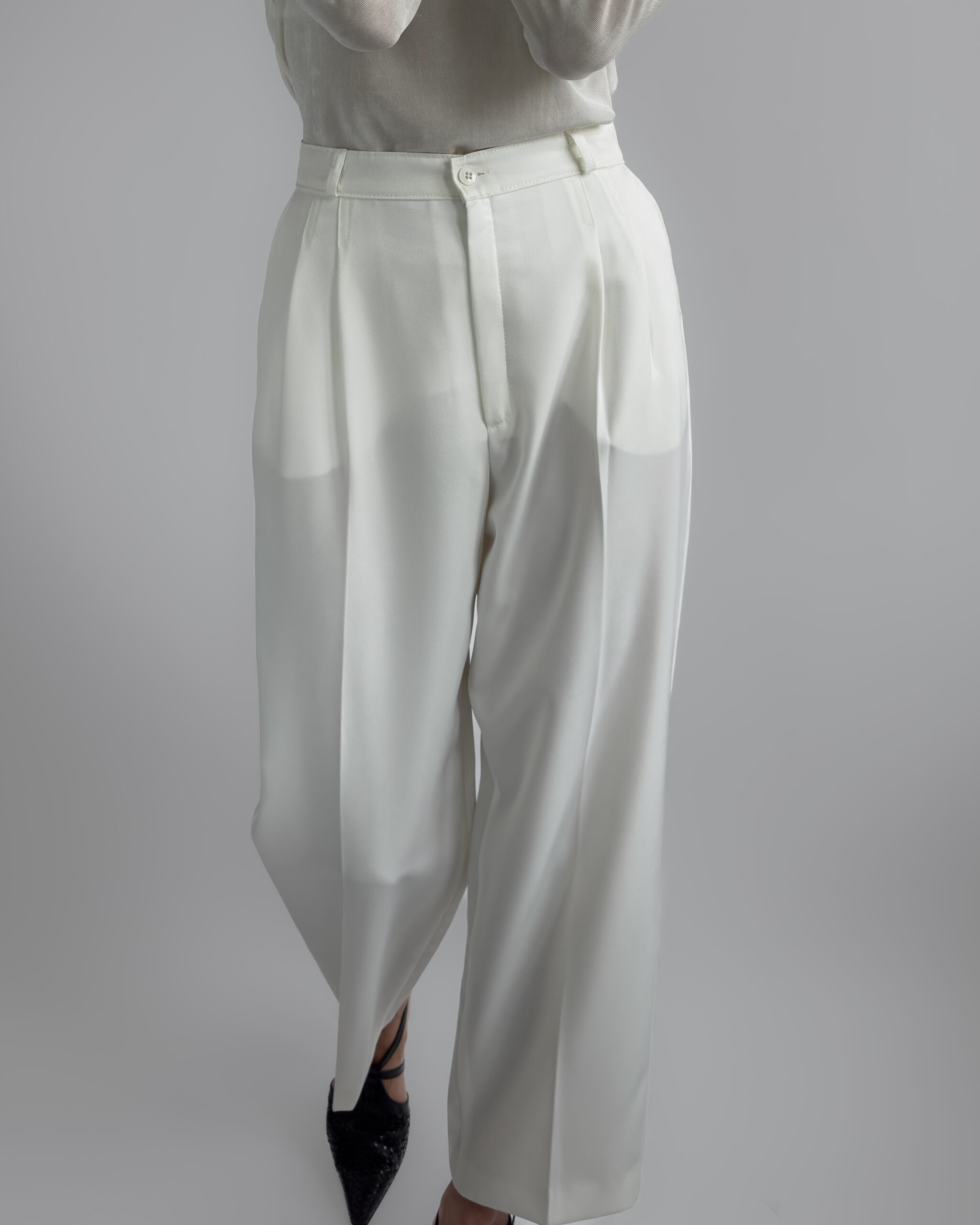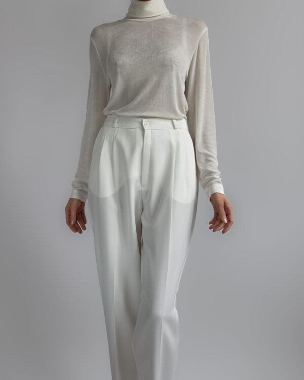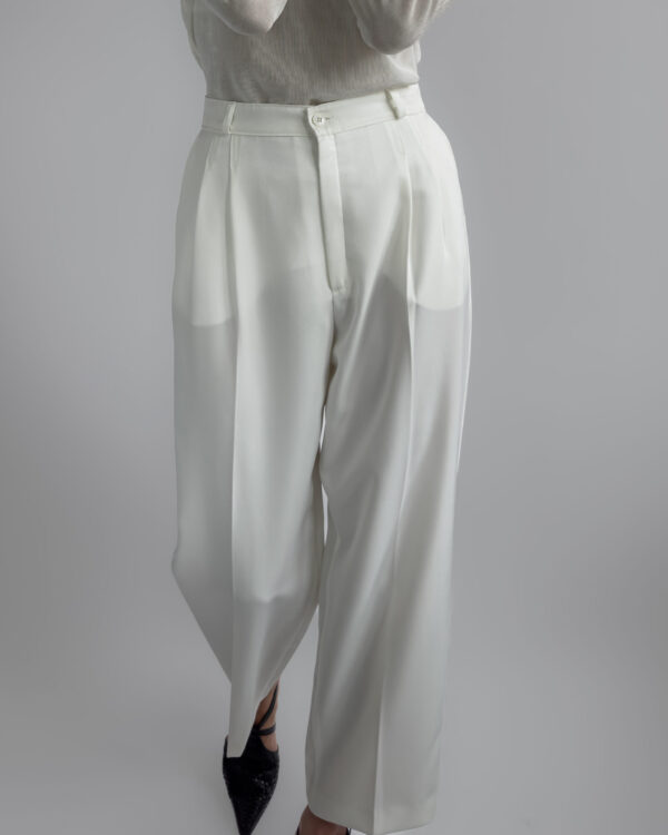 Classic pleated suit trousers in a soft cream white tone. Relaxed tailored fit with front pleats and slightly tapered leg. Smooth fabric with light structure.