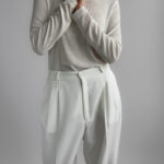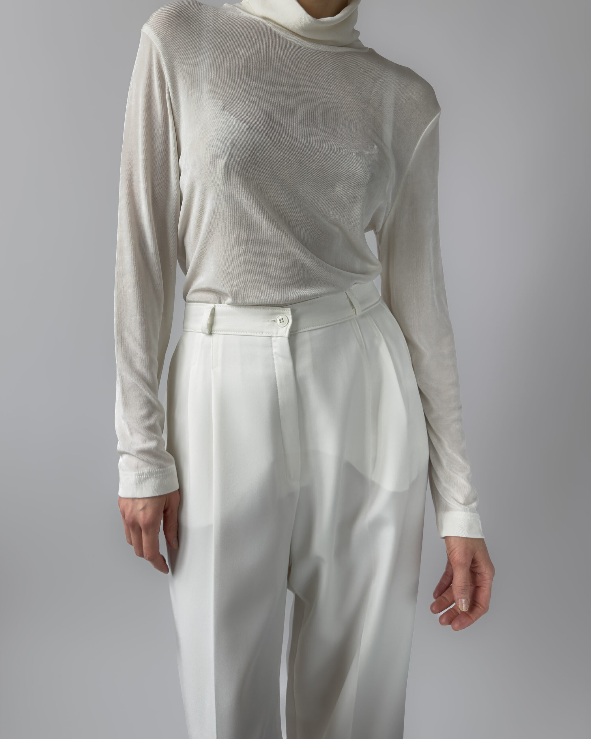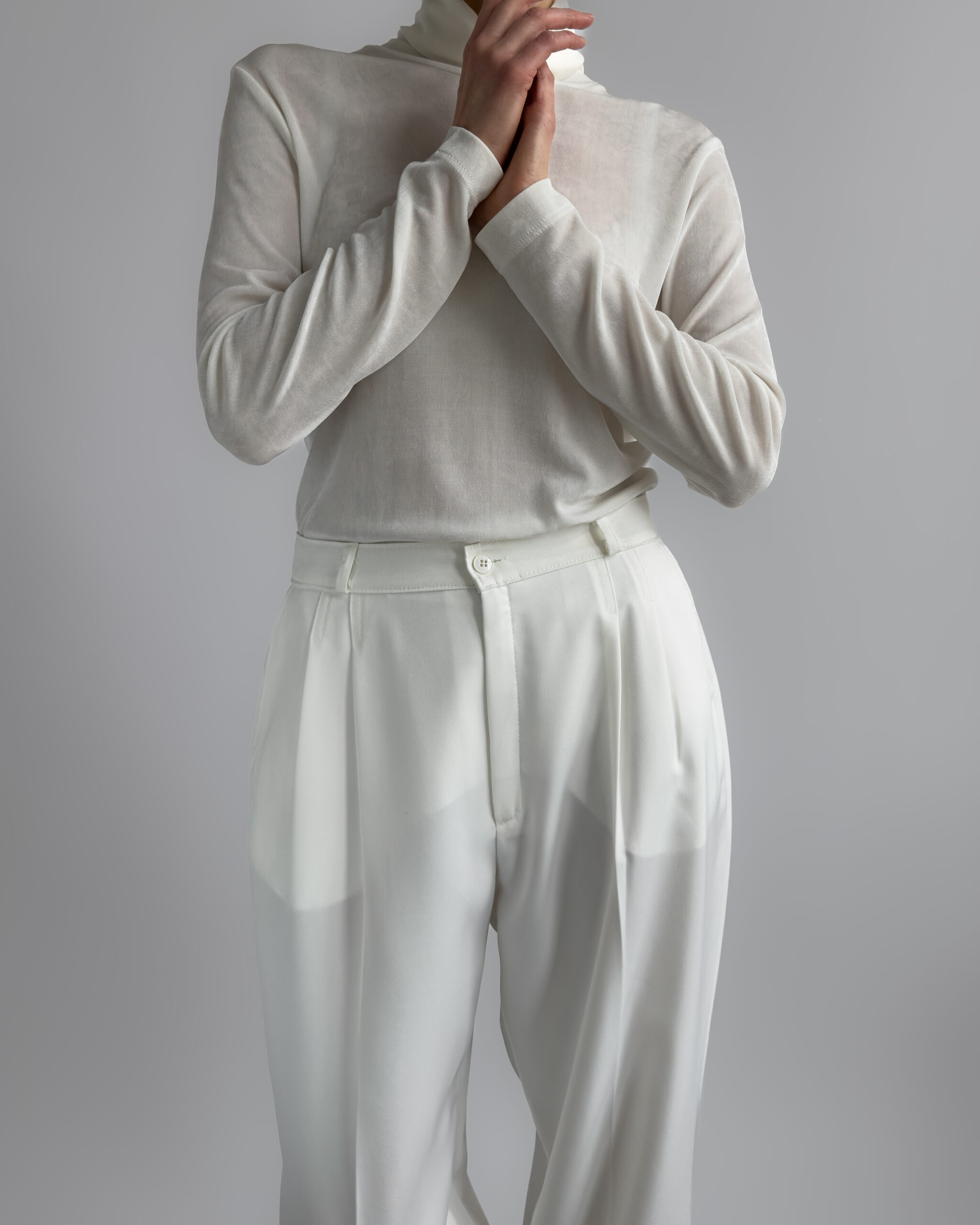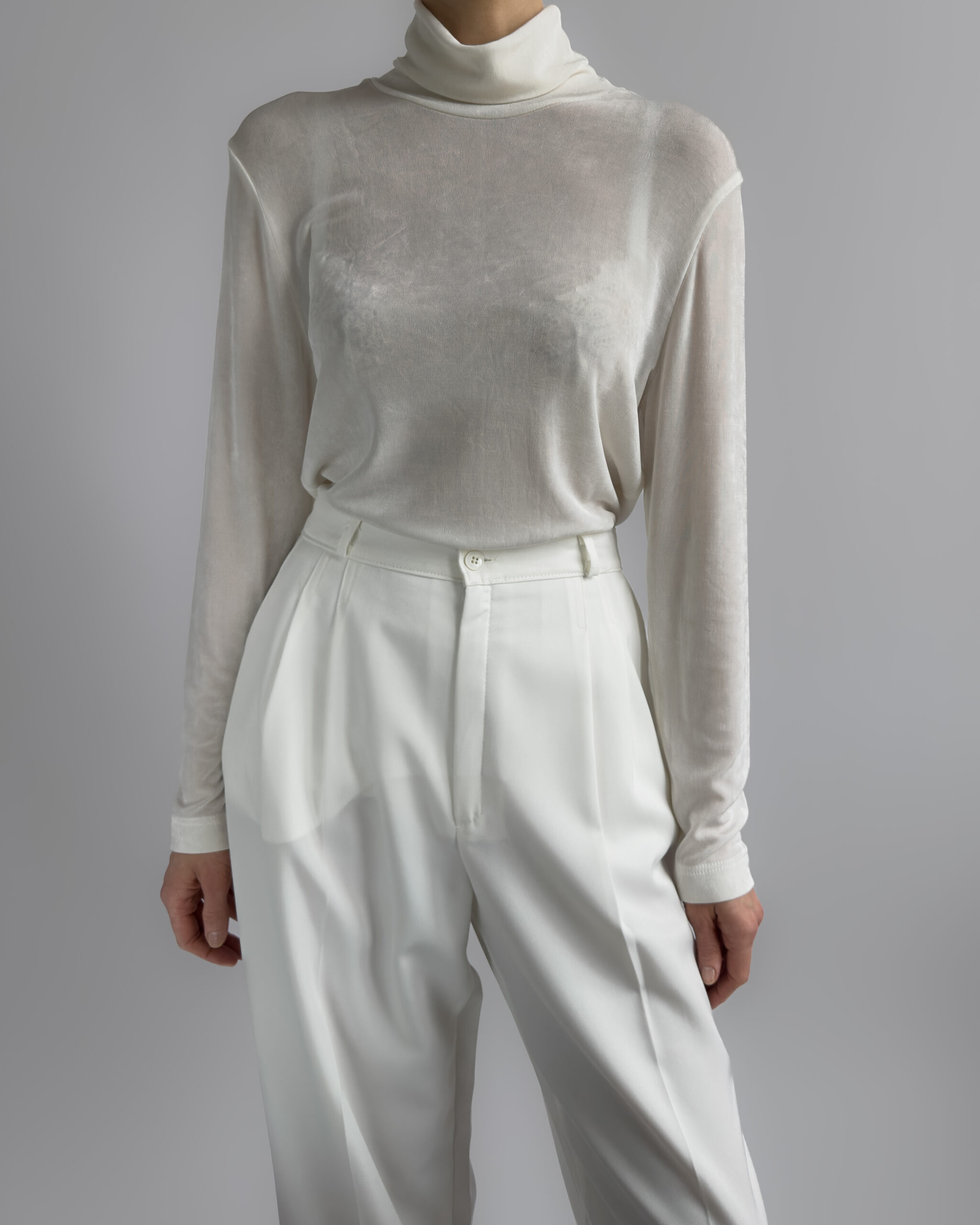 Classic pleated suit trousers in a soft cream white tone. Relaxed tailored fit with front pleats and slightly tapered leg. Smooth fabric with light structure.