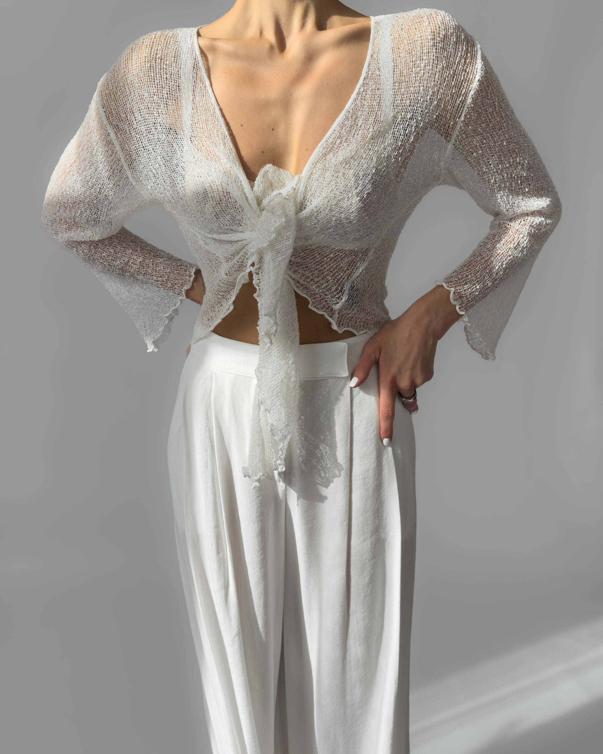 Sheer Tie Top | Cream White