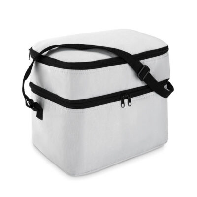 600D Cooler bag with 2 compartments and aluminium foil lining. Adjustable shoulder strap.